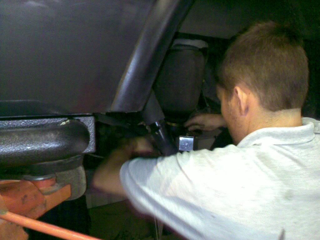 Pete working on rear shocks and lift kit: