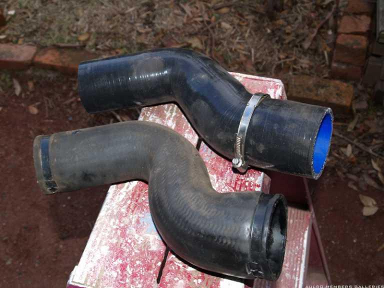 Within an hour, I had the two replacements (OEM for AU$80) for the turbo-intercooler side as the EGR side was fine. From from ringing around, the OEM part was changed/upgraded in 2002 and have a different construction. To be sure, both hoses had started to de-laminate and had several bubbles like the one shown here.