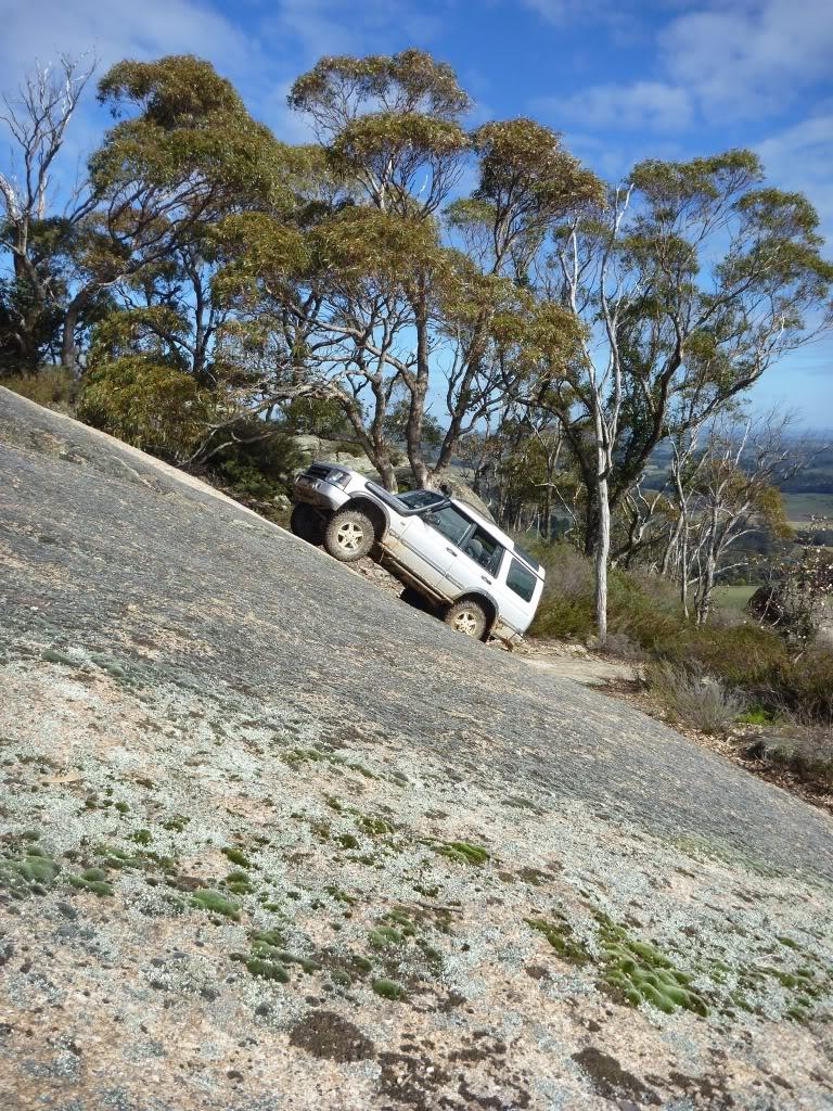 1st gear low range CDL in just off idle and you could just hear the odd tyre slip on the granite rock face.