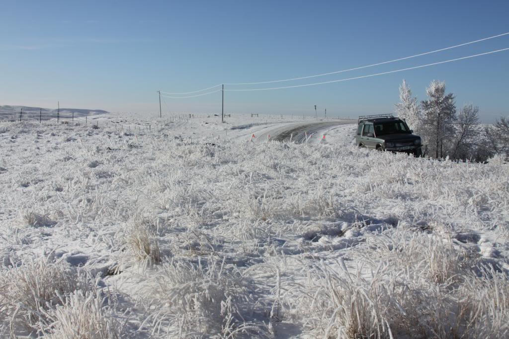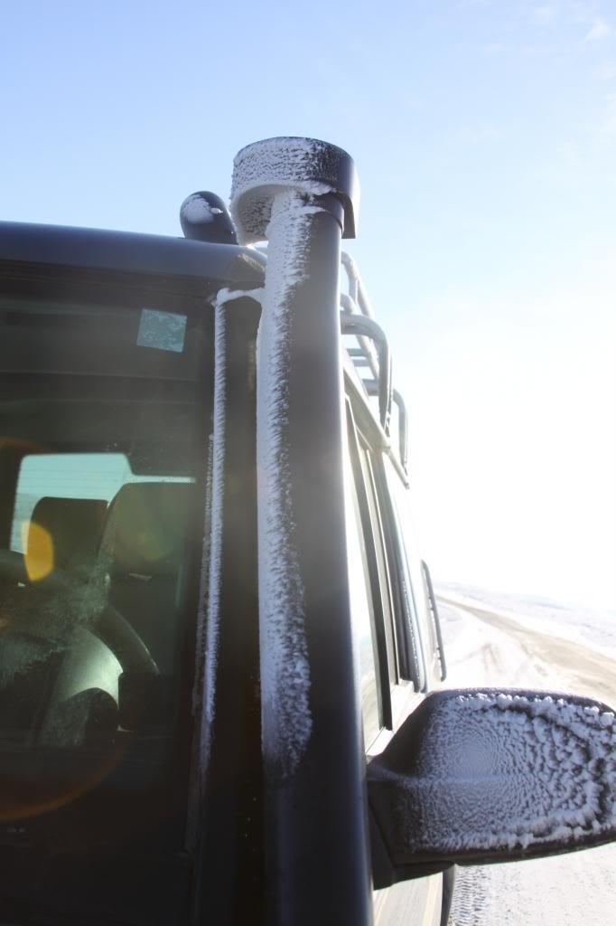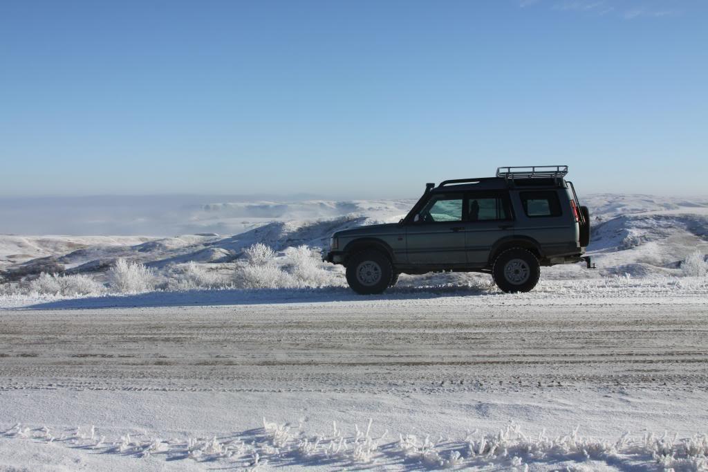 Hello, I am from North Dakota, USA. I have an 04 Discovery with a 4.6l Petrol engine. I have a 2in OME lift with 265/75/16 tyres on Terra Firma rims. Thought you guys might enjoy a picture of my Discovery while I am out working. Our temperatures vary widely from -80 degrees below 0 Fharenheit to 110 degrees above. On this day it was -10.