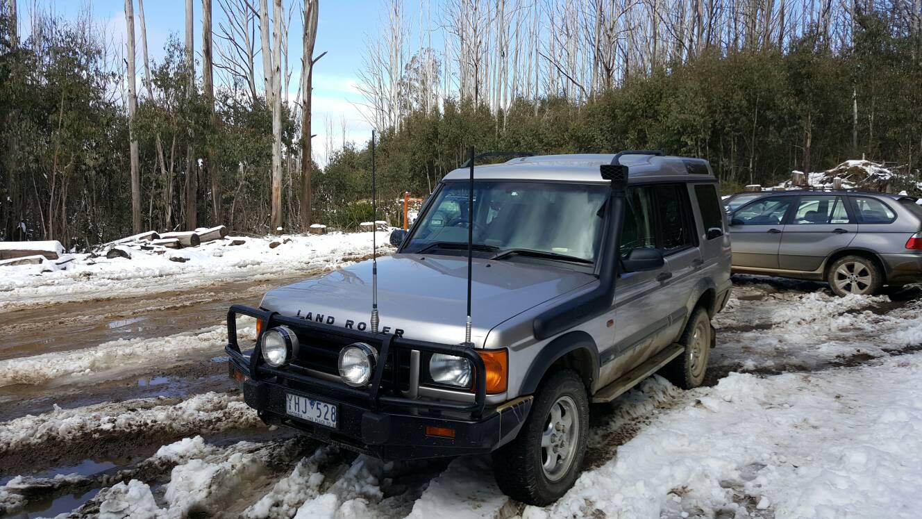 A scan from the LROCV magazine. This at the Toolangi State Forest. I got stuck in the middle and had a front and rear wheel adrift. The traction control wouldn't bite enough to get me off. I had a very gentle pull from a 90, hence the snatch strap.