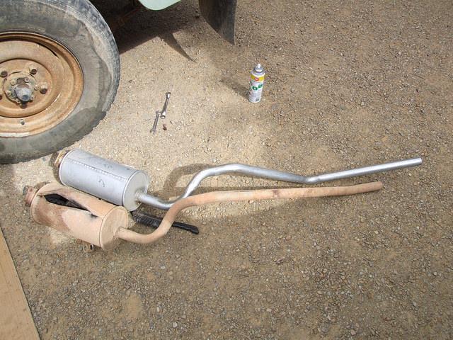 I noticed when I looked underneath that the exhaust exited at the side of the vehicle but there was a hole in the mudflap where it used to exit. The silencer/tailpipe looked newer that the rest of the system but the silencer had split open.