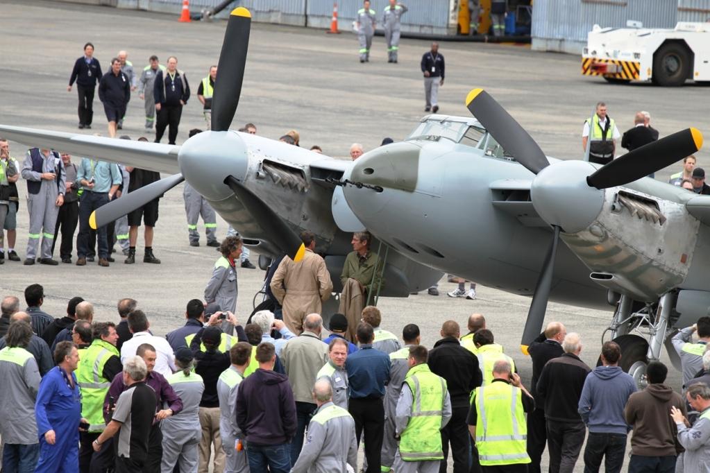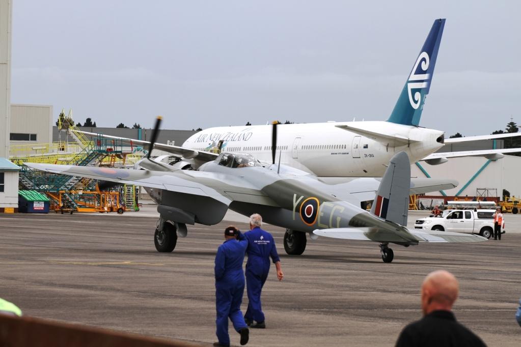 The pilot, Cathay pilot David Phillips, is one of New Zealand’s most experienced pilots in vintage and classic aircraft. He owns and flies his own Hawker Hunter jet. He said the Mosquito was quite unlike anything he’s flown before.“Kind of heavy and light and the same time. It’s hard to describe. The controls are light; it’s responsive but you are conscious of the inertia. You can feel the rudder is a long way back. It flies like a very well designed, 15,000lb twin-engined strike aircraft.”