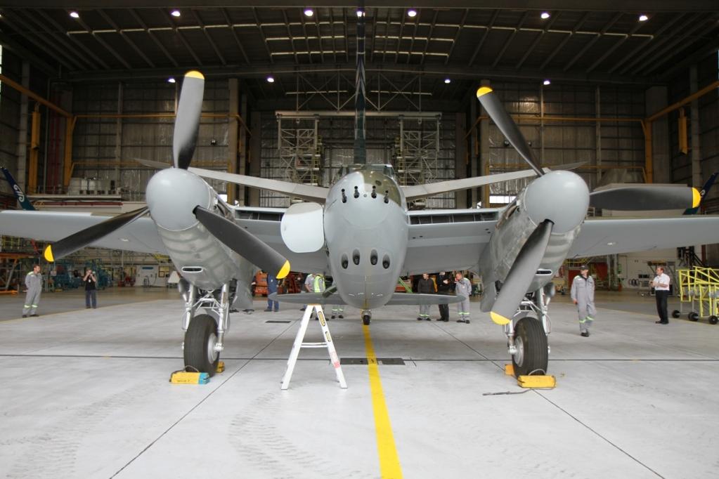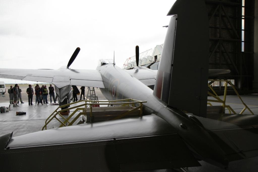 KA 114 was built in Canada and saw brief service in 1945 before going into reserve storage. It was sold to a farmer and it lay in a field for 30 years before it was moved to the Canadian Museum of Flight awaiting a proper restoration. Jerry Yagen of the Fighter Factory Collection in Virginia bought it and sent it to Warren’s team to restore. What makes the Mosquito so special and so rare is its wooden balsa-core sandwich construction. It was the world’s first composite construction aircraft. Like almost every other Mosquito, KA114’s body had rotted – it broke in two when being rescued from a farmer’s field. So this and several other Mosquito projects around the world owe their existence to Kiwi Glyn Powell and his Mosquito Aircraft Restoration team who undertook the task of building the two 11m moulds needed to lay up the new fuselage halves, with the precision needed to get the bulkheads and pick-up points in exactly the right place. They also built the 16.5m wing.