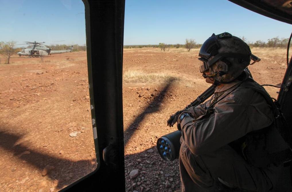 Three Venom helicopters and four MV-22 Osprey aircraft are operating from an expeditionary airfield 300 miles inland, supporting the battalion-sized element conducting the exercise. Koolendong demonstrates the operational reach of the 31st MEU and why it is the force of choice for the Asia-Pacific region. Also participating in the exercise is the Marine Rotational Force – Darwin and soldiers of the 5th Royal Australian Army. The 31st MEU brings what it needs to sustain itself to accomplish the mission or to pave the way for follow-on forces. The size and composition of the 31st MEU makes it well suited for amphibious operations, which includes raids, assaults, evacuations and humanitarian assistance operations.