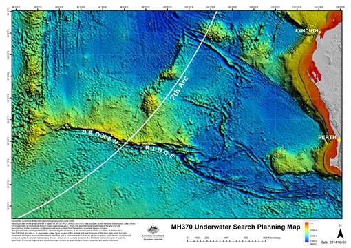 The "7th arc" is shown on a map released by the Australian Transport Safety Bureau.It said the arc reaches from 20 degrees south latitude to 39 degrees south latitude. It said that refinements in the analysis would produce a target search area of about 17,500 square nautical miles, with a length along the arc of about 350 nautical miles.