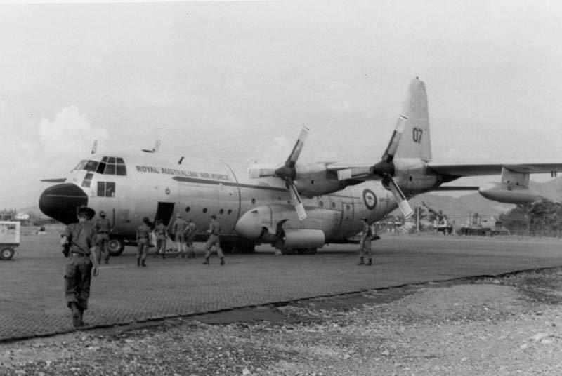 Last shot is the good old C130 (and an early one at that), my transport back home again. Someone will be able to tell whether it was one of the old "A"s, or one of the brand new, at that time, "E" Model. (I think it was an "A" as the extra fuel tanks were outboard whereas the "E" I think had the tanks between the motors.