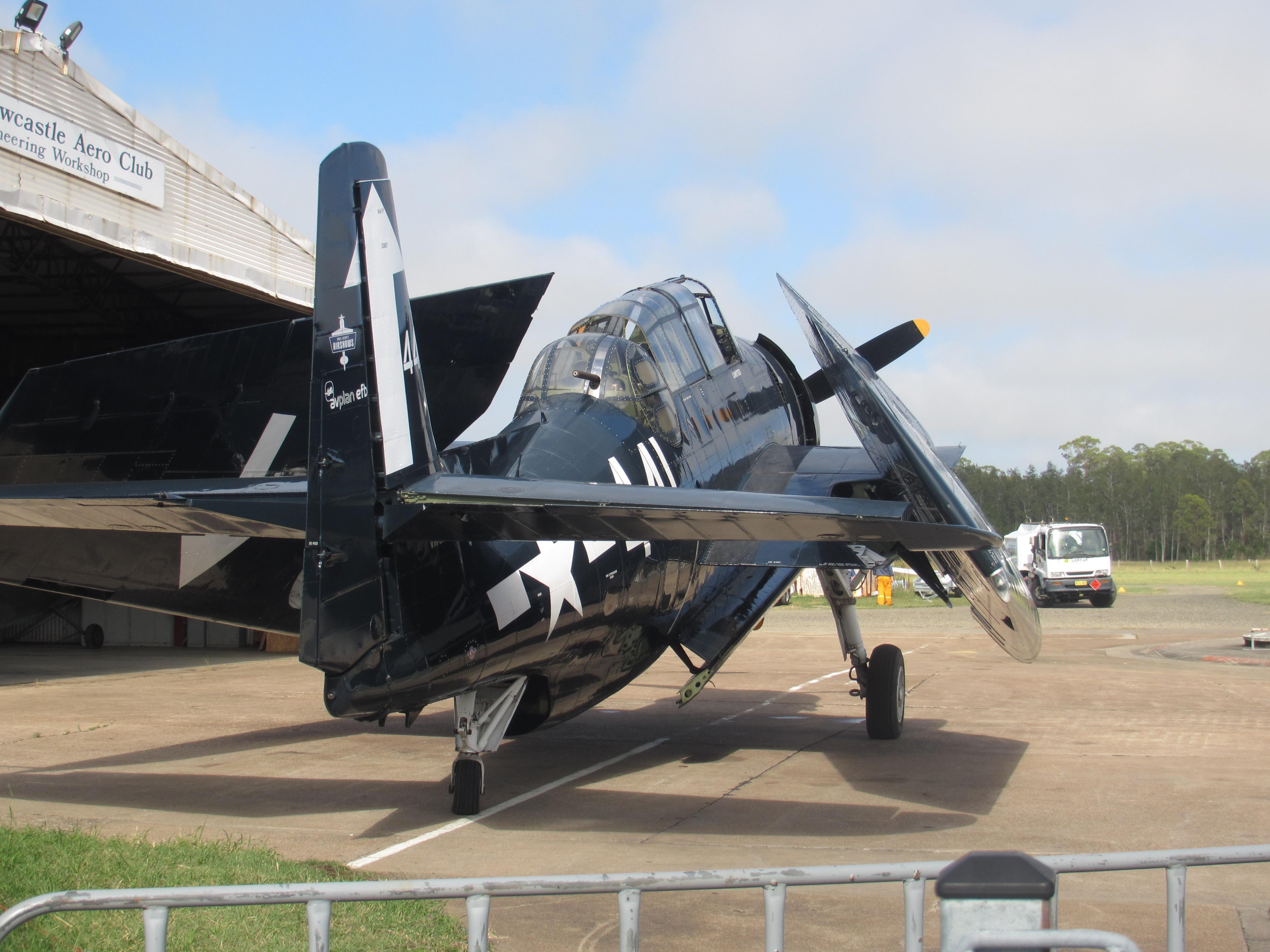 within 30 minutes of arrival the first of the days attractions fired up, but I couldn't leave to look at it as I had 2 lovely young women asking all manner of questions about my vehicles, but I heard it, and thought to myself "gee that's GOT BALLS" the engine sound of the FU Corsair is something to hear, it's up there with some of the best sounds I've ever heard, it took off into the fog and disappeared, I was hanging out for it to return, but that didn't eventuate as it crash landed at the far end of the runway