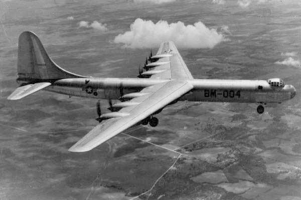 The B-36 was designed to be able to bomb Germany flying from US bases. Too late, and not needed anyway for the original design purpose, since Britain did not fall to Germany, it was repurposed as the US's first strategic nuclear bomber (the B29 was the first nuclear bomber, but needed structural modifications to carry early nuclear weapons). But - the original design basics were set in the April 1941, and by the time it actually entered service in 1949, the landscape of leading edge aircraft design was vastly different. And the appearance of MIG-15 fighters over Korea in 1950 effectively made piston engined bombers immediately obsolete. Not only the engines, but the aerodynamic design was obsolete by the time it went into service, with German research on swept wing design being available to the US after 1945.