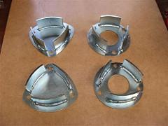 Fabricated steel (Zinc plated) strut spacers that use 3mm for the horizontal plates and 5mm for the vertical (compression) load bearing plates. So far I have found these are not that well finished (weld spatter around the mounting faces needed filing/grinding) and inconsistent in height. Looks like I might need to face one or two off on the lathe to get the vertical plates nice and flat on the mating surfaces.