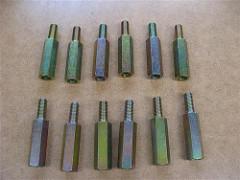 The stud extensions that take the vertical (extension) loads. These are actually too long for the spacers (by 0.3-0.6mm) and vary in length by up to 0.3mm, so require a little lathe time to shorten so that the spacer takes the compression load rather than the stud.