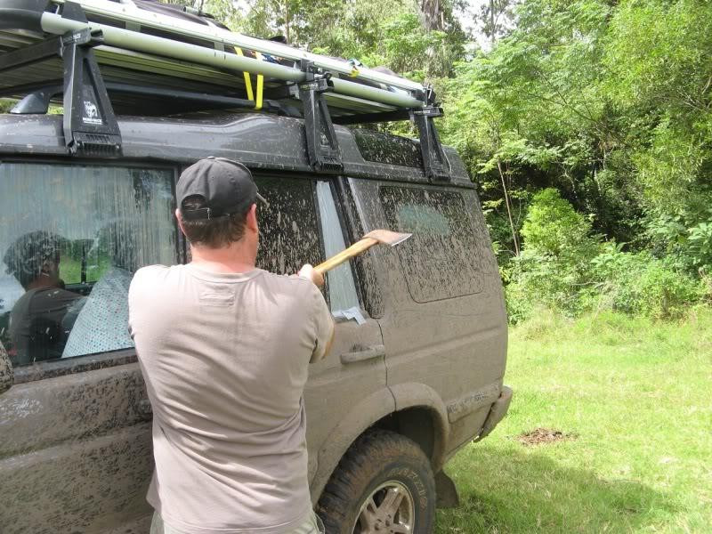 To answer the smashing...you have to start with why did car lock . Kids were in it....I was busy finishing packing up/ airing up tyres......jackson ( almost 3) must have pushed one of the buttons down...so when I told all 4 to get out....my daughter shut her door and they all locked....with the car running .