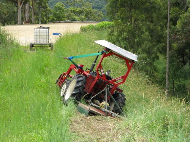 Yep just another day at the Learys when the familar cry of ''Honey can you get the Rangie and winch the tractor'', back onto the track before it ends up in our neighbours 100m below us.