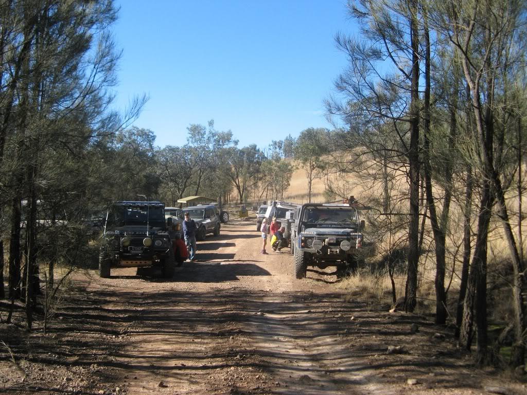 Around 12ish we heard the sounds of a diesel coming ( At Sundown you can hear a pin drop so anything "strange" is heard straight away) and down first was JohnR and family. One by one they came into camp where I was greeted by some shocking news. No not that some springs came off somones trailer or a bearing here....but no Gan ( formerly known as Rod) was off the turps. Whattha? Brother Rod of the homebrew? We all stood around in silence at this unbelievable news...............................but then it was forgotten. For the remainder of the day it was balance of 8 cars setting up camp and off on a firewood run. Whilst the Jap cars scouted the plains for wood.....................nooooooooooooooooooo..... ..us hardened Landy folk went down Rats Castle.....through the massive wombat holes to get our wood.....and drag it or percariously have it piled up in the back of ones D2a....hoping one won't take out the rear windscreen