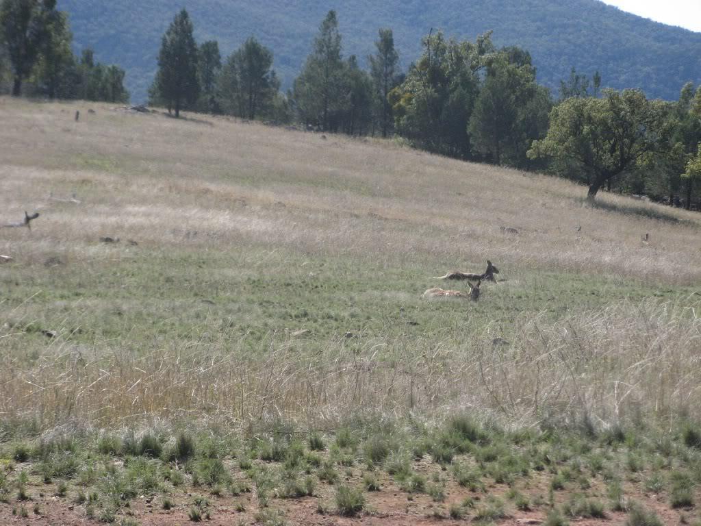 Around dusk True and I went to find what animals were around.....we saw a magnificent buck....with huge antlers and got within 50 metres before he and his harem buggered off. We always wandered up quietly and got close to a big mob of roo's................before they buggered off to.