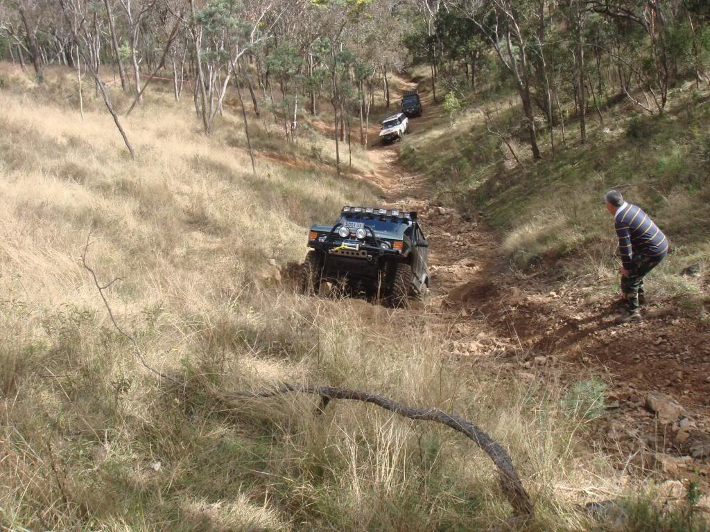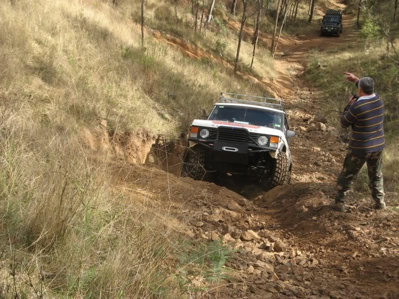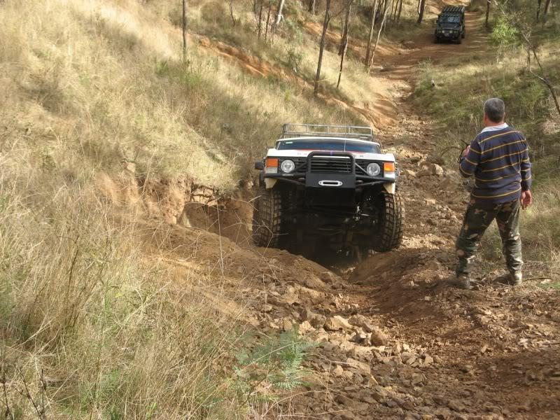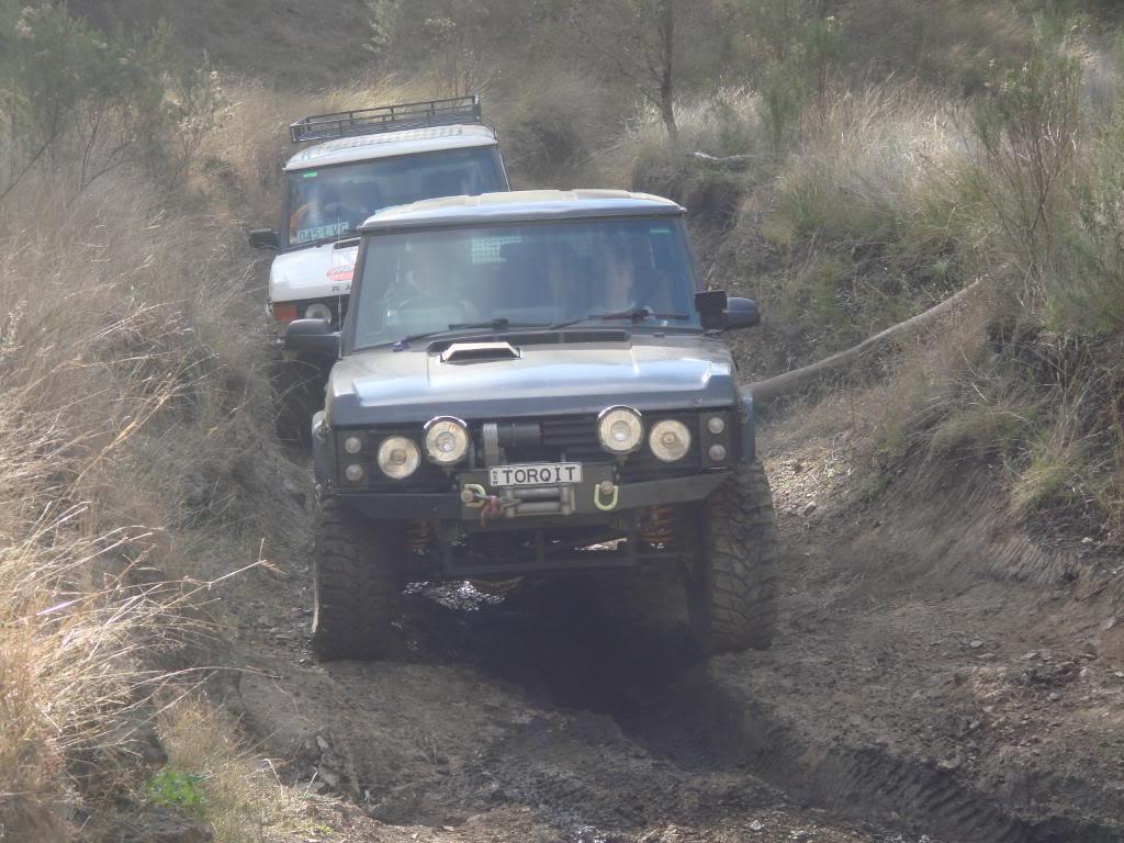 Had a great weekend though it was a pity I had to leave early Sunday morning again. It's mostly fun driving a 33 year old vehicle with no power steering . It is surprising how well it gets around despite that. Just a slight misjudgment of wheel position though and you end up sliding off and hanging over metre deep holes as Pete's photos show. Thanks to all the leaders and spotters for the help and everybody for the company and Justin for the winch out. I didn't get a lot of photos since I was driving, but this is one I like. Pick the new vehicle .