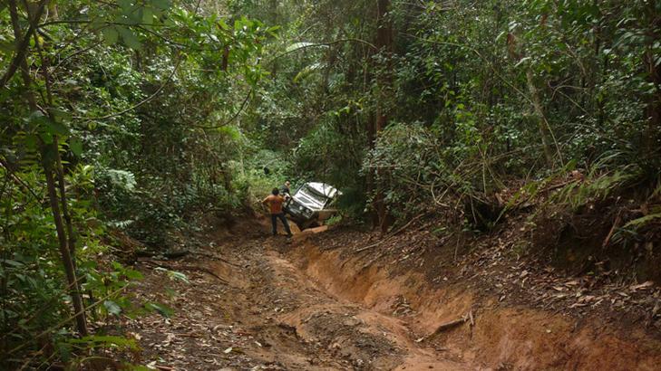 2. Grimace and Pete reversing down the hill to help Grant who was stuck near the bottom