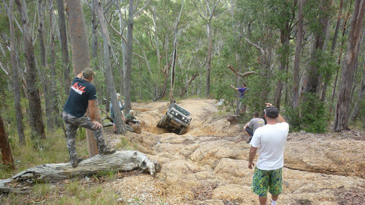 4. Grant testing out the angles, and stuck, and waiting for help - refer pic 2. We were at the top discussing how to help if someone failed to make it up, wondering where the other 2 were when there was a call for assistance - Grimace was happy to reverse back down the hill.