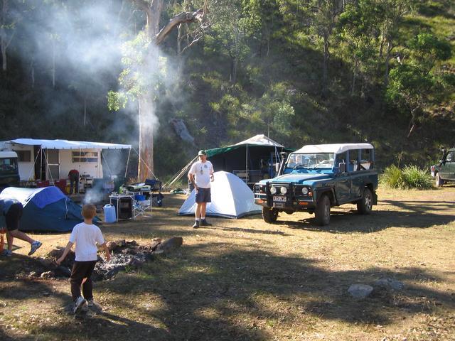 20 Landrovers, (10 Defender/110/county/ute's/and a D3), and an array of other brands. The landrovers had the best camping spot and did the best as far as offroading goes (saw a few jeeps and other makes not make it...) Very dry and dusty, the tracks were loose and unpredictable. The campfire was enough to make any greenie cry and the banter and stirring next to none. Of course i forgot my camera (but got good video on Stikman's machine) and as mentioned added some character marks to the left front door (not real happy about that) and broke the mirror off. But apart from that it all went well... at least i did not get snatched up that hill!!!! Also met some great guys from the Sunshine coast and Brisbane clubs....