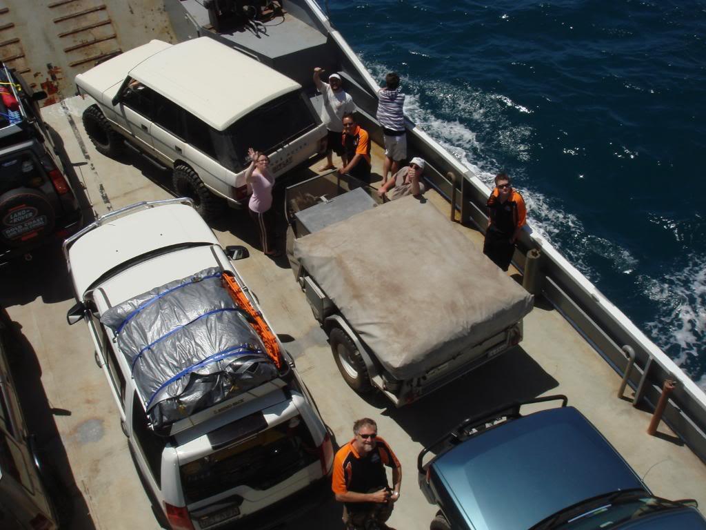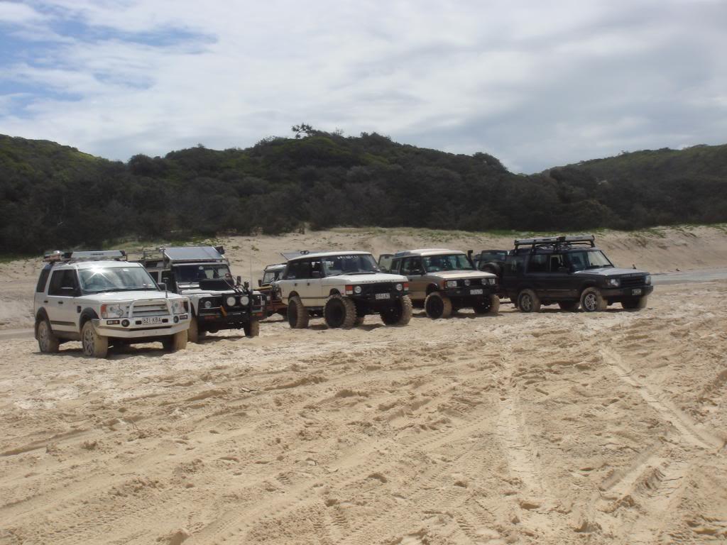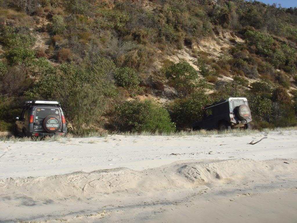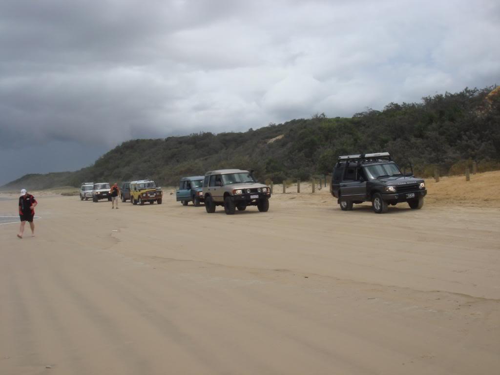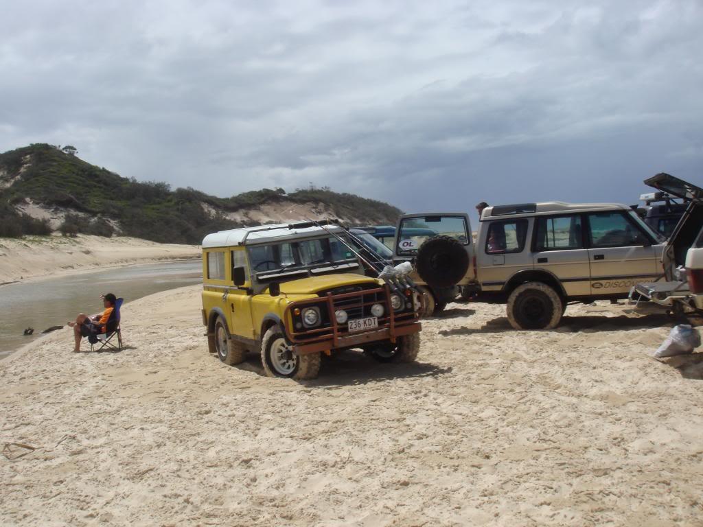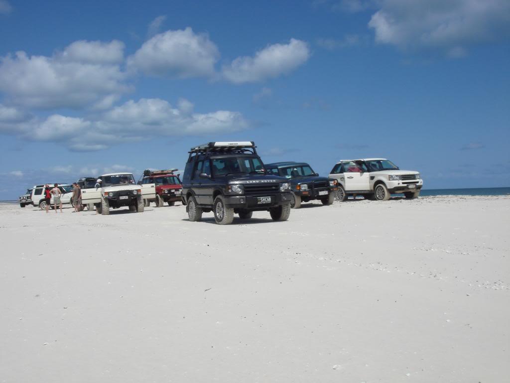 All the vehicles disembarked from the ferry and hit the inland road.....ain't that a pearler. Reckon it takes a couple of years to forget how it shakes, rattles and rolls your insides around. When we got to the end of the road...we hit a row of fourbies parked and figured high tide was up. So we pulled over to wait and chat.
