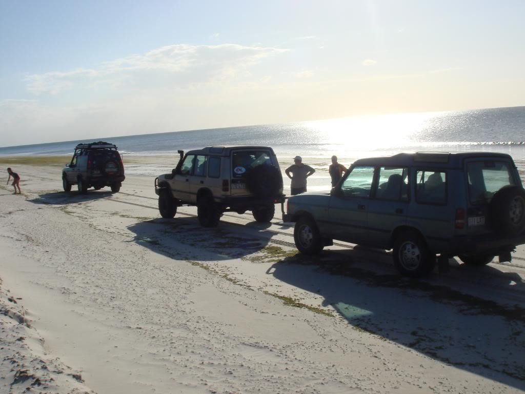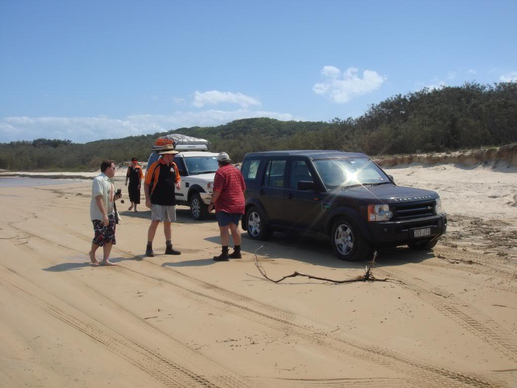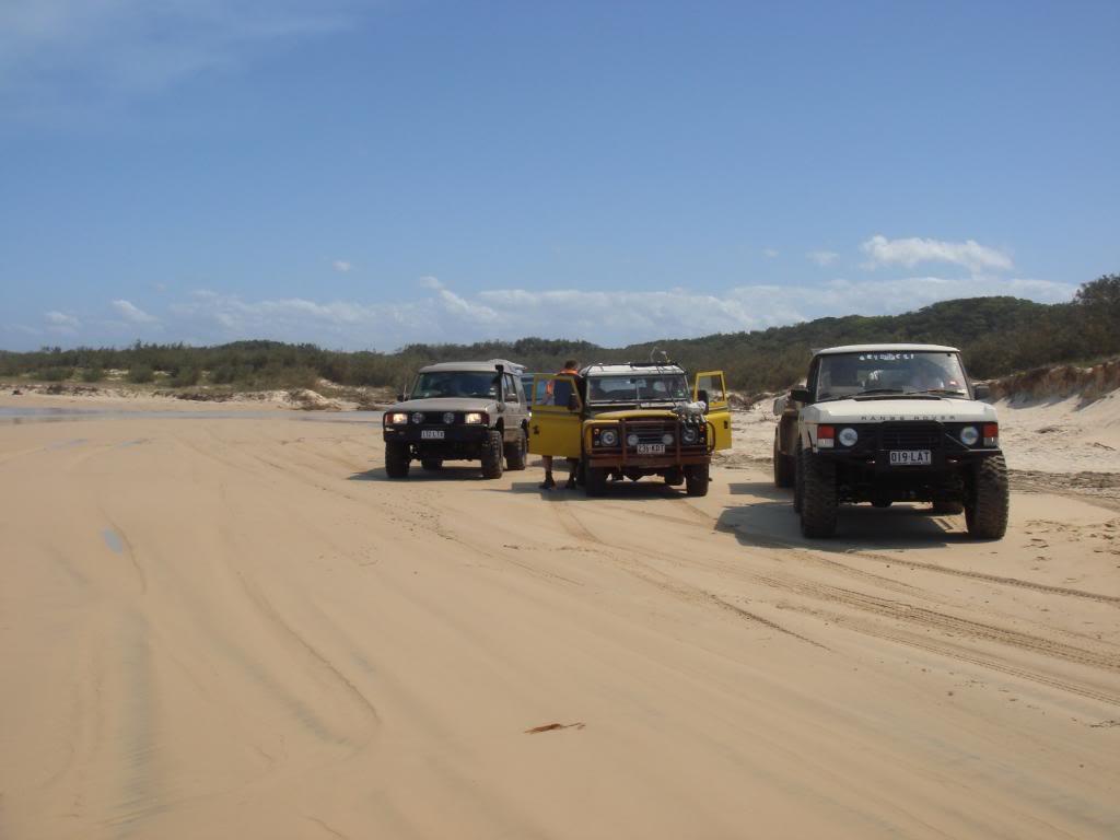 The Aqua-Disco had a slight hiccup as Stevo mentioned, the oil cooler line on the sump had shaken loose on the inland road, Stevo and I had stopped for the rest of the convoy to catch up when i discoverd a dark patch on the sand, it was too dark to be water so a quick looksie and I discoverd the worse case scenario. After a bit of thinking, wiping the area and starting the ignition the oil was leaking out of the lower oil cooler line. A bit of a turn on the nut and it had come loose so out with the shifter and it was fixed in a matter of a few minutes. I had to steal some of Grimaces oil that he luckily had on board (thanks heaps) we got to Eurong, I bought some more oil and it needed a good 2 liters of that puls the couple of liters that I got off grimace so it had lost a ****load of oil. Imangine if it hadn't been discoverd, could have been very ugly