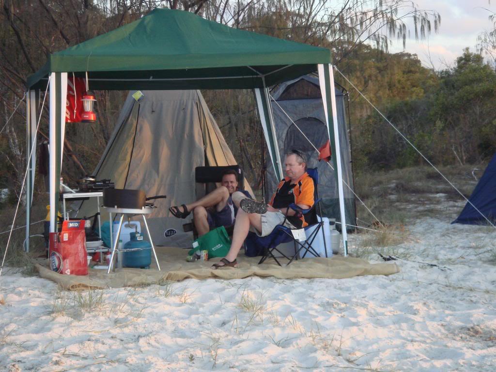 Bright and early at the usual location...I met up with Dave/ Son Ben and Grimace/ Jess. We knocked down some health food at Macca's and trundled off. On the way through we picked up Mark and sons/Dave and John Hampson/ Trav and the the trek to Rainbow Beach continued. Coming into Rainbow...some bloke called Tim Jordan rang me on my mobile.....after a few moments of speaking...realised it was Timj.....duhhhhhh.....and he had arrived safely with Phil ( his daughters boyfriend).