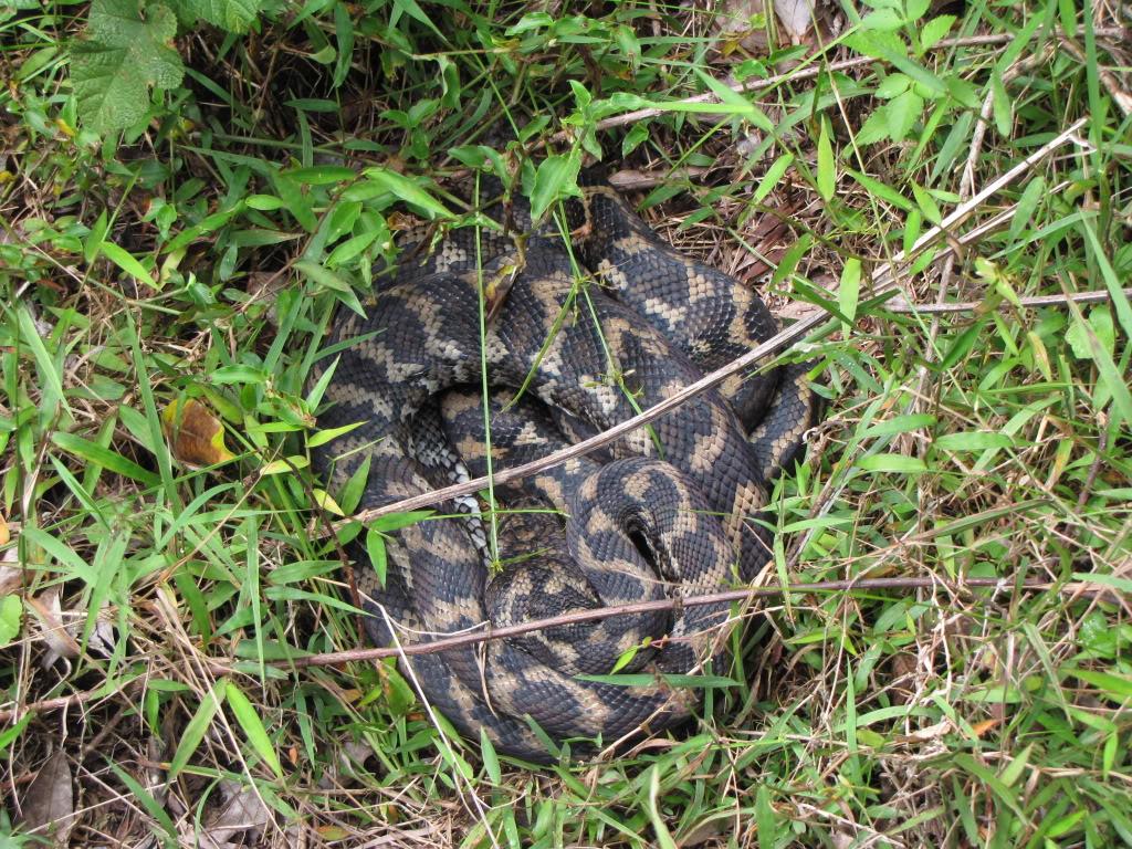 And just to prove that the python was alive compare this shot with the one of WhiteD3's and you will see that he has moved. (He must be a male, he is lying in the sun resting, obviously after a hard days work doing chores as allocated by the female of the species!)