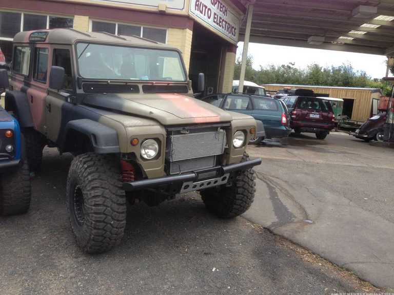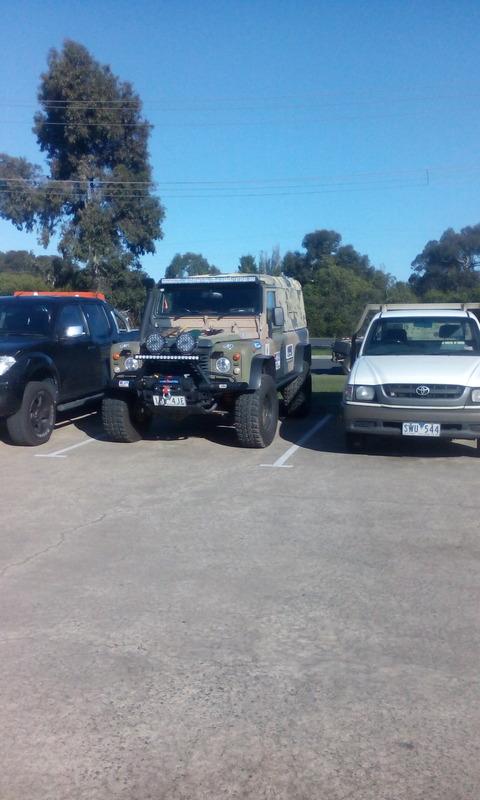 This tricked up perentie is at the local Cranbourne 4WD shop. It will be taking part in the out back challenge. The young veterans are the people doing the work and the out back challenge. It has a full internal roll cage so apparently a bit of work to get in and out of. They also have standard perentie there as well.