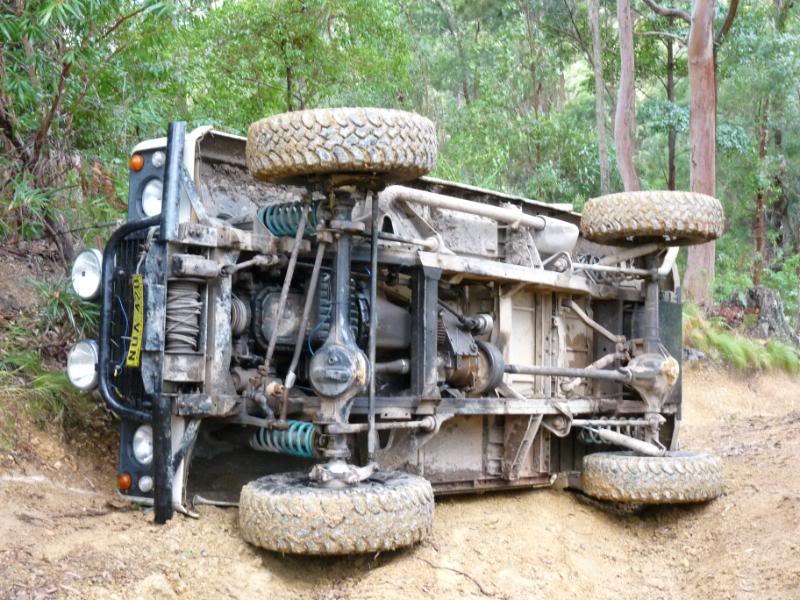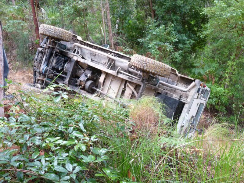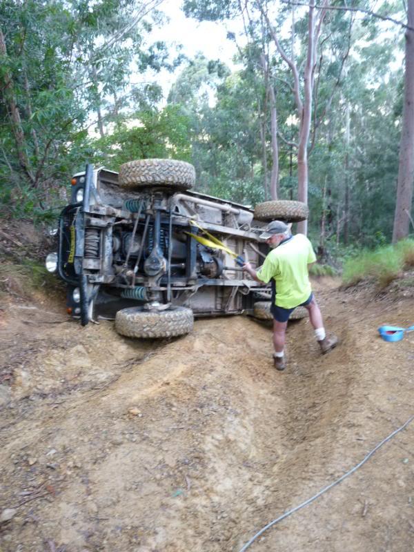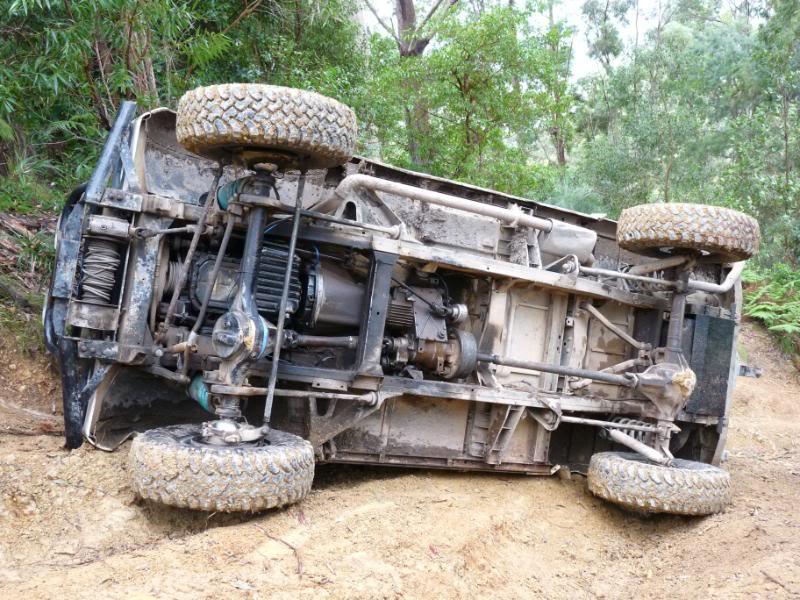 We headed out for a quick run yesterday only to have a roll over on the first track, while reversing back down the last section of this particular hill to have another attempt at it, the transfer case popped out of lowrange and took off down the hill a few metres and this is where it ended up