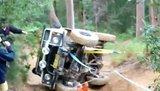 We hooked a strap around the chassis then ran a snatch block off a tree and winched the county back on its feet