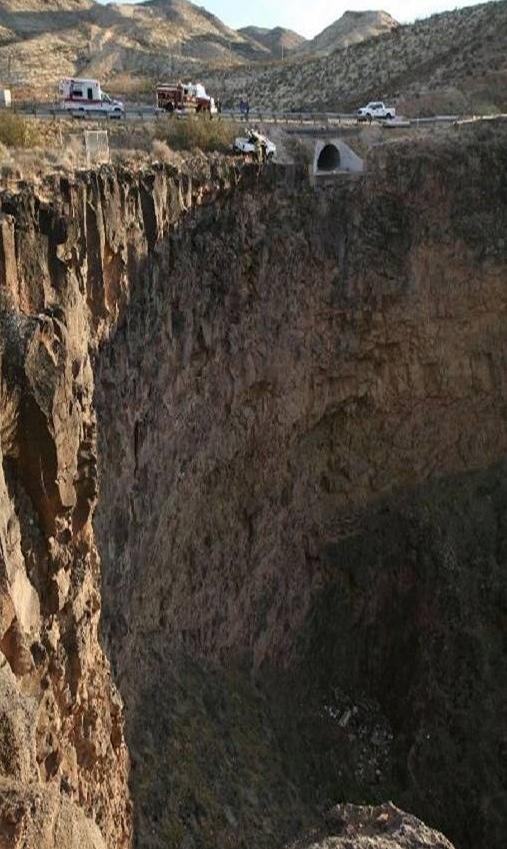 Look at the picture above and you can see where this driver broke through the guardrail, on the right side of the culvert, where the people are standing on the road, pointing.