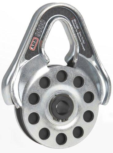 The best snatch block for synthetic rope is this type where, because of its design, the rope is less likely to slip between the pulley and a side plate:
