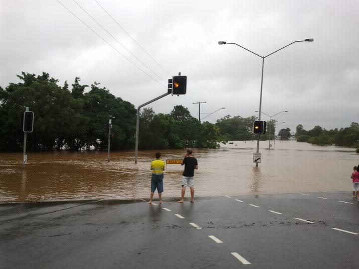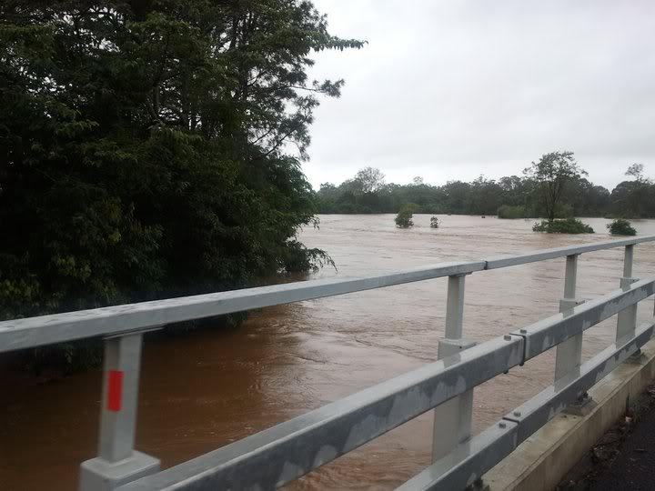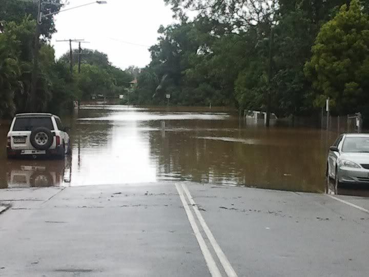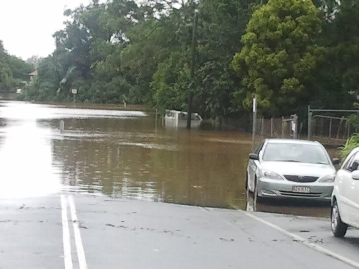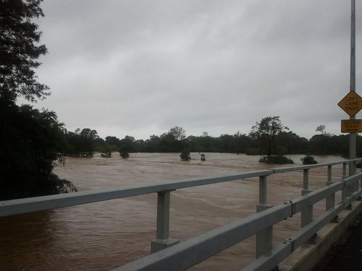 That yellow sign you see, is a hieght restriction sign for high vehicles for the rail road underpass leading into Morayfield shopping centre. The clearence is around the 2.4mtr mark from memory, the water is well above the rail road tracks!