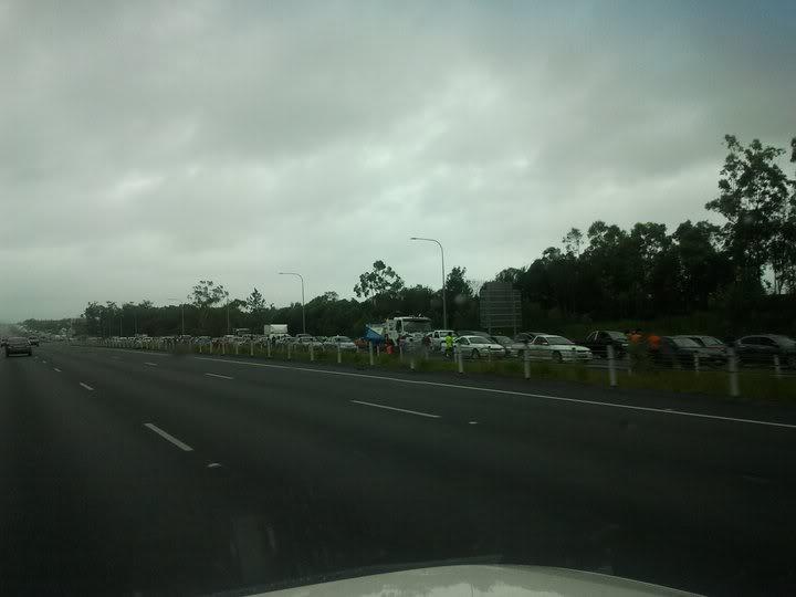 Morayfield Road - Caboolture (nothern end up near showgrounds) 4 lane road, Nth bound lanes impassable