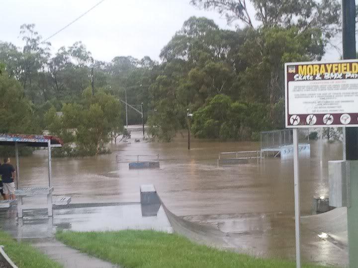 I've seen more photos of the skate park with several more idiots diving off the railing of the vert ramp ... The ***** thing about it is, it'll take several rescuers to grab them putting their lives at risk to save them and or one of their mates being swept away to their death to realize just how friggin stupid they are!!![]()