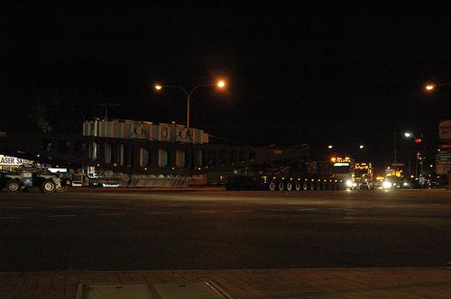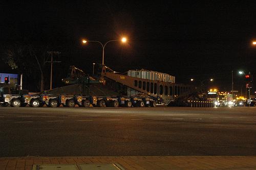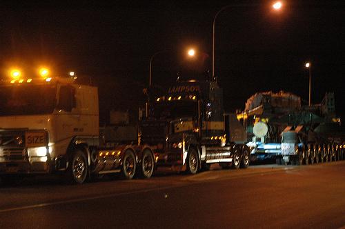 When the rig was on its way to the LUP, they had 3 trucks up front, and 2 at the back. The road on the way there is fairly hilly, so there certainly would have been a need for some extra pulling power.
