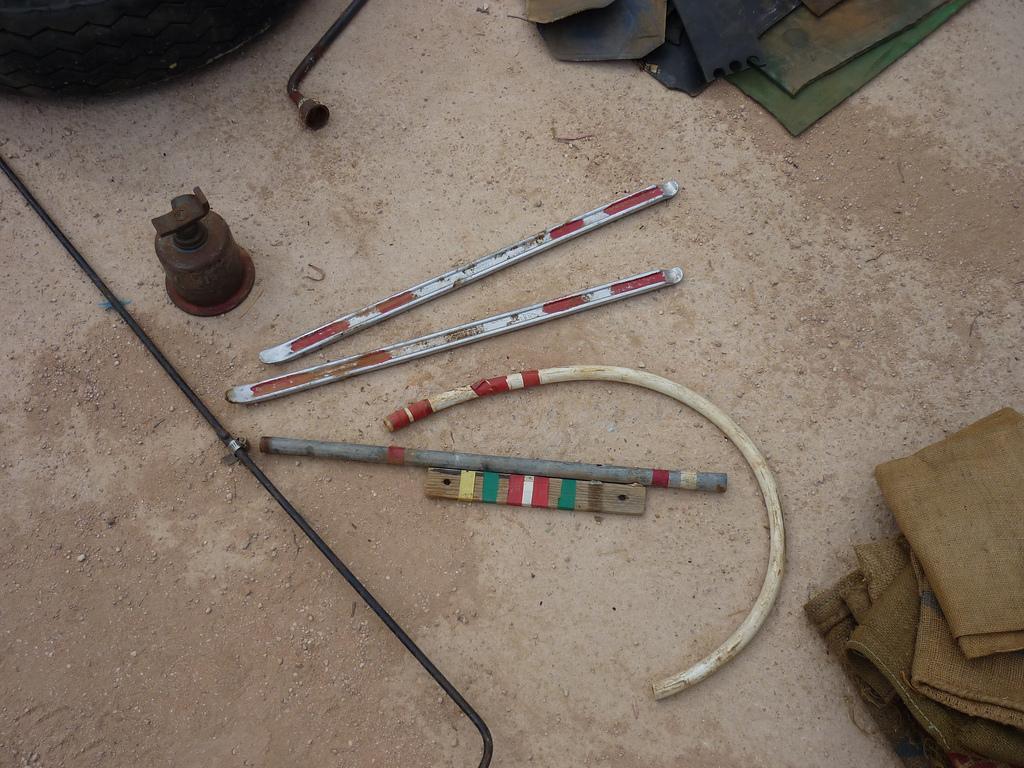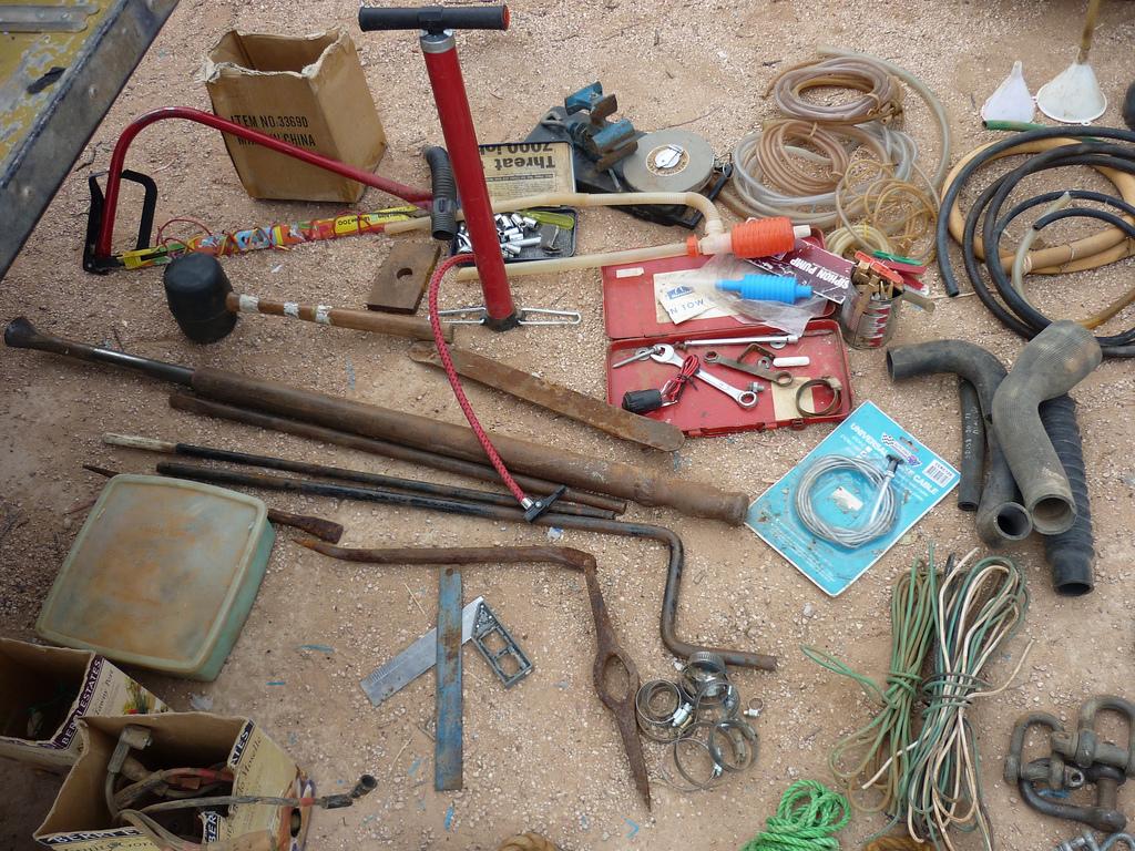 That double ended 1/2-9/16 th spanner with the 10 degree offset looks like a very good quality tool(stahwile'), and VERY usefull ;) love the slide type bead breaker too,but all in all that would be the spares used in a mining envioriment and a long way from a large town :) and the sparkplug tyre pump/inflater is a usefull tool for tyres and blowing out blocked fuel lines, I'd have the wiring sorted in a few hours ;)