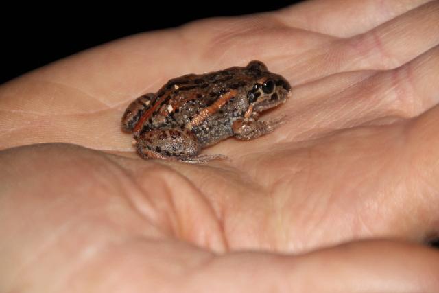 The frog is a Salmon striped frog.. it burrows underground or under logs and rocks to avoid drought..![]()