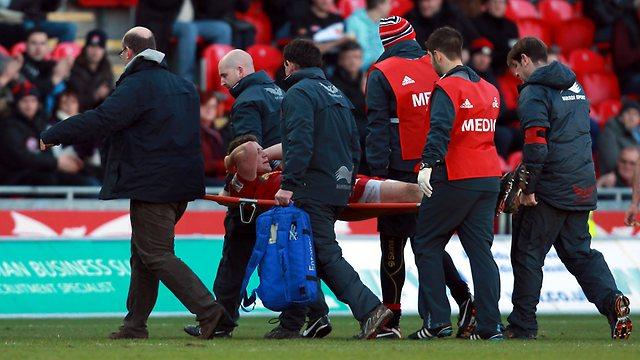 Heartbreak ... Priestland is stretchered off with his Wales and Lions hopes shattered. Source: AAP