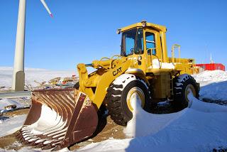 ----- Keldyn had his first day practising to drive the loader today moving snow and ice about as he will need to be proficient by the time of resupply. Listening to the radio he couldn't open the door to get out, and Geoff said just open the bloody door but little did they know the warmer weather we have been experiencing had melted all the snow inside the door and turned to ice in the door lock mechanism. After an hour or so, Geoff managed to get him back out using a crow bar.
