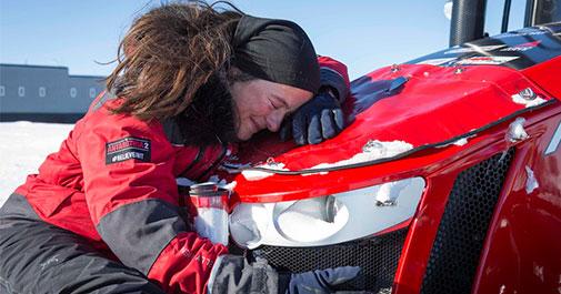 Dutch actress and adventurer Manon "Tractor Girl" Ossevoort, arrived at the South Pole Tuesday, driving a Massey Ferguson across the frozen wastes of Antarctica.