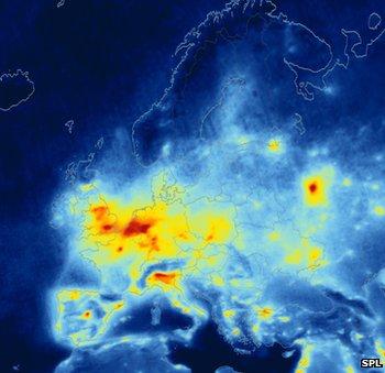 Isn't the EU headquartered in Brussels? The red spots isn't pollution, just a load of hot air.