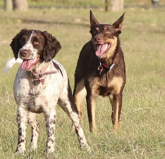 Our two waiting for someone to throw the ball,Springer and Koolie,Dixi and Pepa