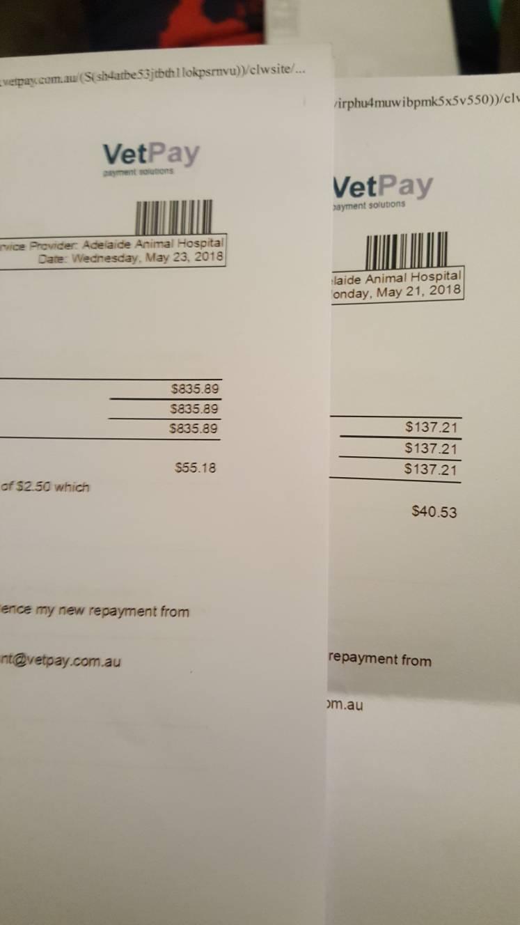Today and mondays efforts. Thanks vetpay. Snoopy is still crook and not eating yet but tbey let him come home. Hope he starts to eat soon.