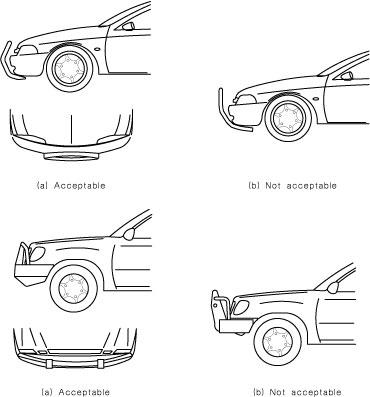 In no way does that bar :as the standard requires"generally conforms to the shape, in plan view, front view and side view, of the front of the vehicle to which it is fitted"