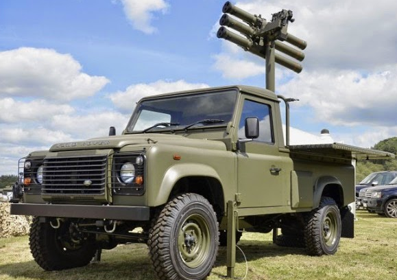 At this years Defence Vehicle Dynamics military expo, at the Millbrook proving ground in Bedfordshire, it was announced the missile system manufacturer Thales is supplying the Lightweight Missile Launch Vehicle which has been ordered in quantity by the Indonesian MOD as part of their 100 million GBP ForceShield integrated Advanced Air Defence package. Essentially a Defender 110 core model truck with rear body upgrades, [ 110 ute] to which a specially designed fold-down missile operator platform has been added.