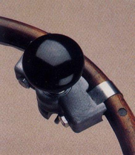 The old type of steering wheel knob that I am aware of was about golf ball size, somewhere between golf and tennis,which fitted easily inside the palm of your hand and rotated when you turned the wheel. they attached similar to a hose clamp.
