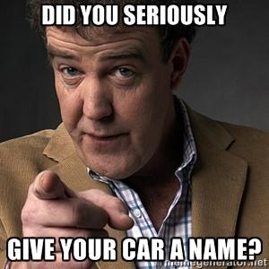 I can't name my cars but you are free to extoll the virtues of shooting people who