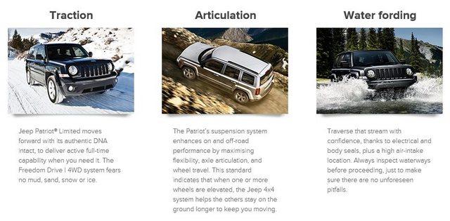 Jeep does make some very capable 4WD's - the Patriot is not one of them. These things are in the same class as the small Lancer based Mitsubishi SUV's. In other words, not an offroader, but a city run-about with the general shape and looks of a more traditional 4WD, and not much else.
