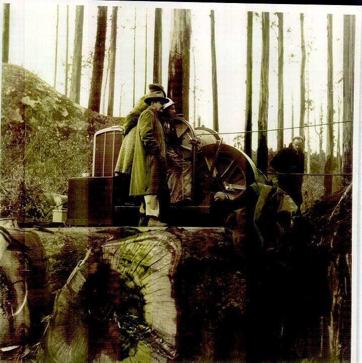 The Washington Winch at Nugong is the only high lead/skyline logging system in Victoria which still retains a winch engine and the associated spars and cables. The massive logging engine and winch drums were manufactured by the Washington Iron Works in Seattle, USA, and imported to Australia in the 1920s. Ezard Enterprises purchased the engine in 1959 from the Forests Commission of Victoria, and employed it at the head of the Little River catchment for the 1960/61 logging season. Logs were hauled up from a gully using the winch engine in a high lead system, while the skyline system adjacent to the road was used for loading log trucks. The site consists of a twin cylinder, triple drum winch engine, boiler and water tank, all mounted on a large log frame. In addition, two bare tree trunks opposite the engine acted as head and tail spars, each still supporting an array of steel cables for log hauling and spar bracing. A skyline cable suspended between the spars supports the carriage and fall block. Large trees stumps are used as anchor points for both the skyline cable and the bracing cables.